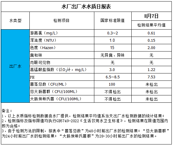 水廠出廠水水質(zhì)日報表(2025-8-7)
