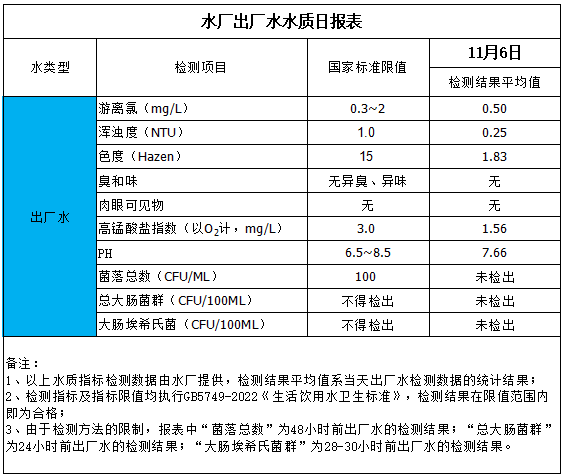水廠出廠水水質日報表(2025-11-6)