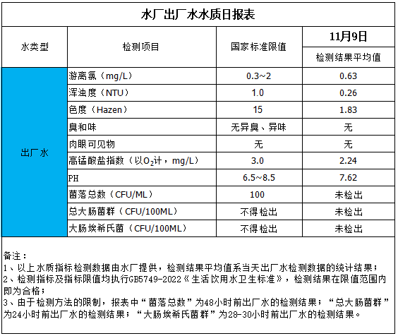 水廠出廠水水質(zhì)日報表(2025-11-9)