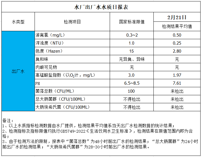出廠水水質(zhì)日報(bào)表(2026-2-21)
