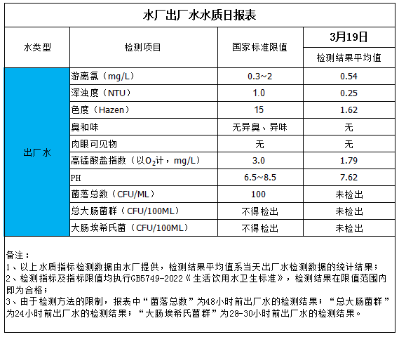 出廠水水質日報表(2026-3-19)