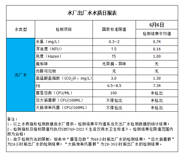 水廠出廠水水質(zhì)日報表(2023-6-6)