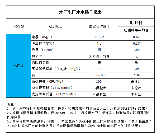 水廠出廠水水質(zhì)日?qǐng)?bào)表(2023-6-9)