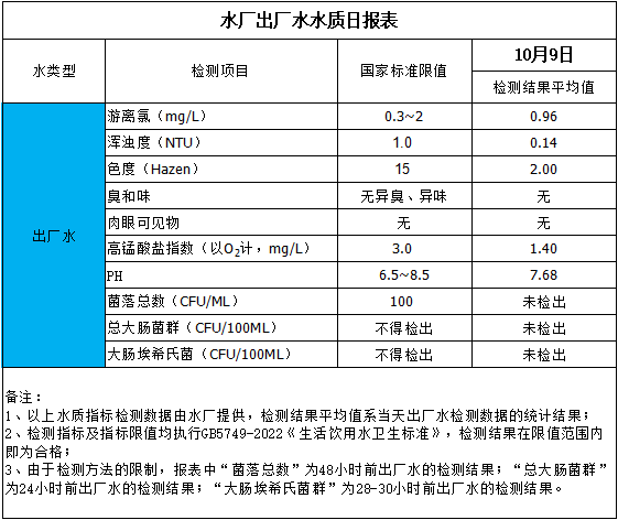 水廠出廠水水質(zhì)日報(bào)表(2023-10-9)