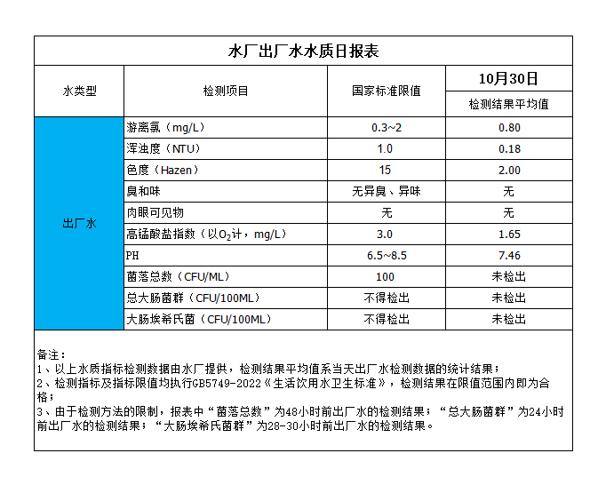 水廠出廠水水質日報表(2023-10-30)