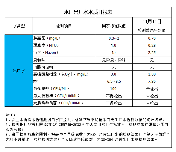 水廠出廠水水質日報表(2023-11-11)