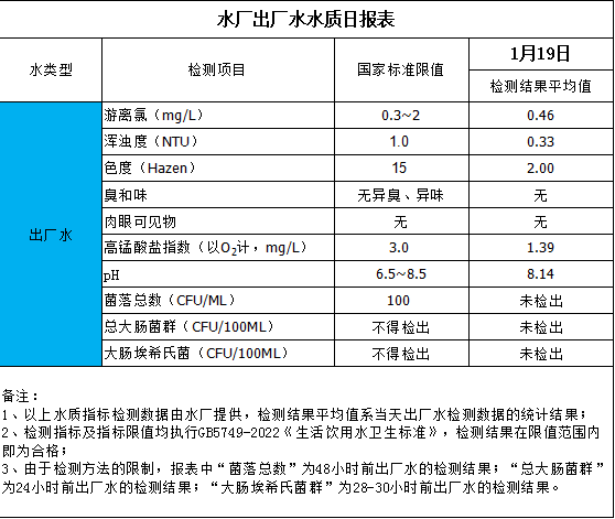 水廠出廠水水質日報表(2025-1-19)